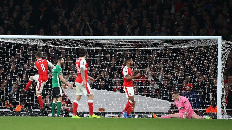 Arsenal melawan Lincoln di pertandingan perempatfinal Piala FA. Pada pertandingan, Minggu (12/3/17) dini hari WIB itu, mereka menang lima gol tanpa balas.