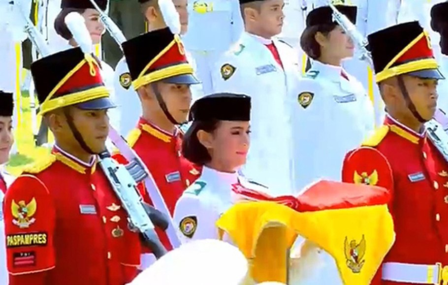 Artinya, bendera Merah Putih yang berukuran 274 cm x 196 cm di simpan di dalam kotak kaca dengan cara dilipat.