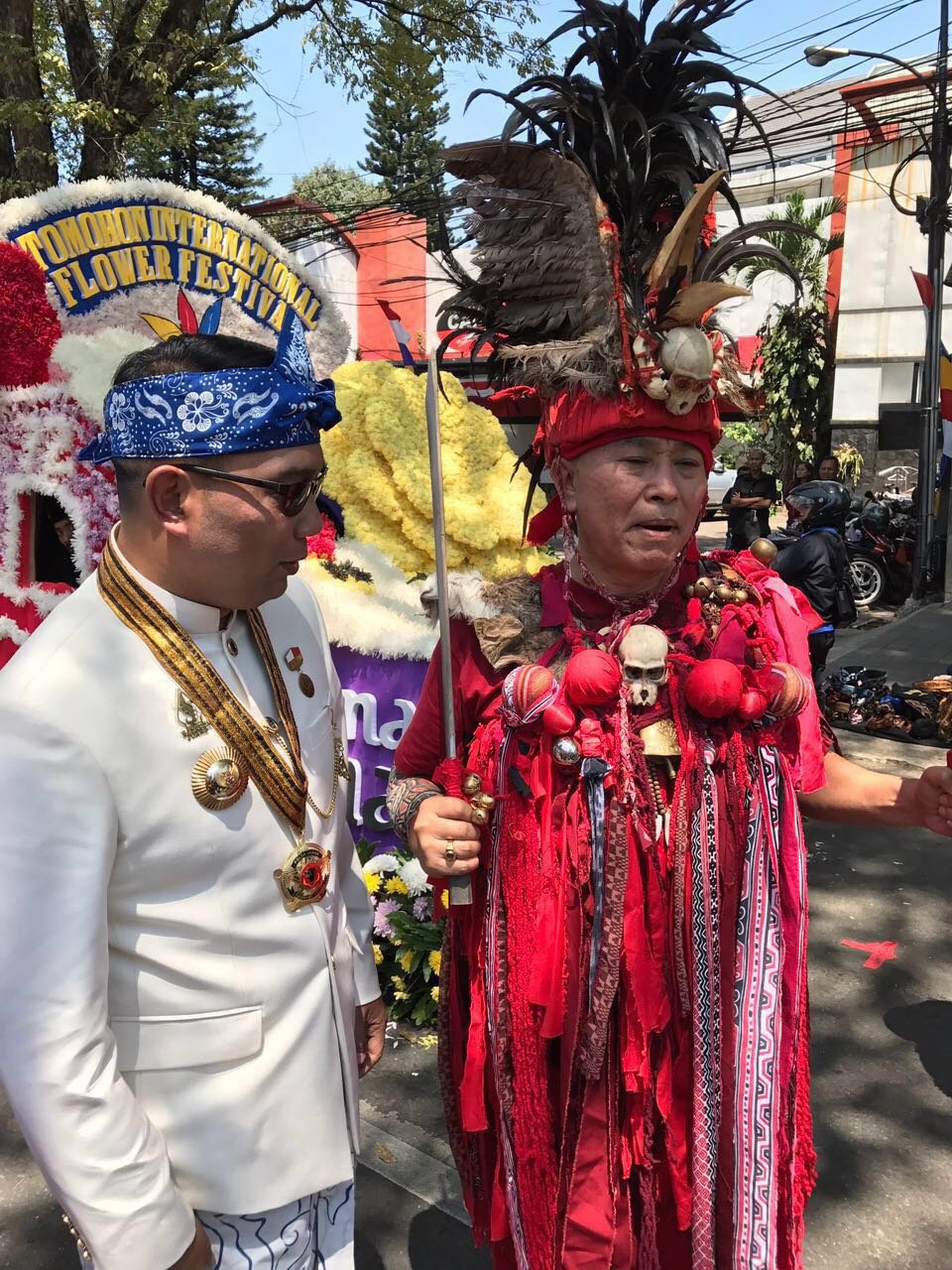 Presiden dan Ibu Negara Iriana Joko Widodo mengendarai ‘Kereta Pancasila’ lalu terus menyapa warga serta seluruh peserta karnaval. Sementara Walikota Tomohon, Jimmy Eman, memimpin langsung rombongan Kabasaran beratraksi di depan Presiden dan Ibu Negara Iriana Jokowi, di Taman Vanda, Bandung.