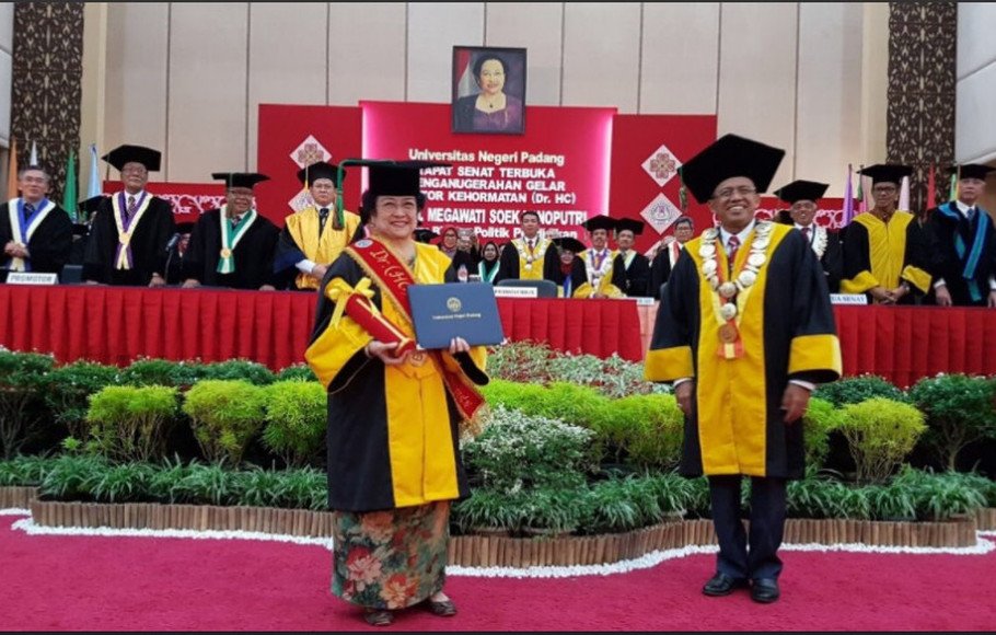 Sebelumnya, Megawati menerima gelar Doktor Honoris Causa dari UNP, melalui rapat senat terbuka yang dilangsungkan di auditorium kampus.