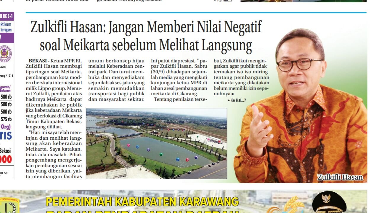 Bahkan, sesudah itu, Zulkifli memberi label Meikarta benar-benar berpihak kepada masyarakat strata ekonomi menengah ke bawah.
