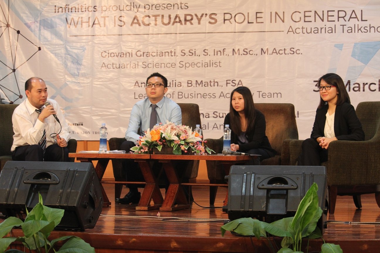 “Dalam bidang aktuari kita belajar menghitung  dan mengukur nilai resiko yang akan dihadapi. Dengan mengetahui resiko, seorang aktuaris dapat membantu  memberi masukan untuk mengatasi resiko tersebut. Dengan kemampuan analisis yang kuat, mampu menjadi problem solver, mengelola resiko. Ditambah dengan kemampuan komunikasi dan komputer yang baik, maka seorang aktuaris dapat meningkatkan kredibilitas dari layanan yang diberikan perusahaan tersebut,” jelas Giovani.