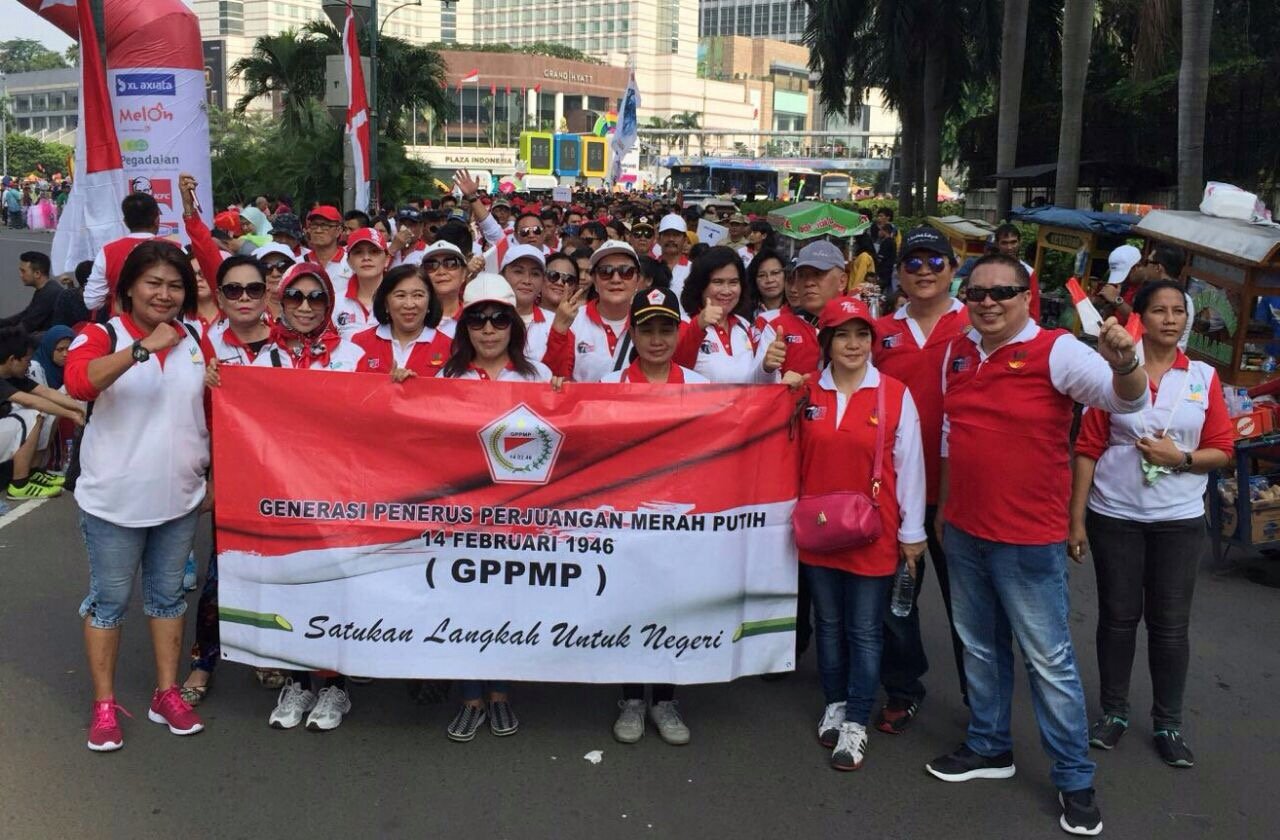 BENDERRAnews, 5/11/17 (Jakarta): Dikoordinasikan oleh empat pentolannya, yakni Ketua Harian DPP GPPMP, Rudy Sumampouw, Sekjen Teddy Matheos, Ketua Bidang KSO Herling Tumbel dan Wasekjen Wency Mangindaan, Generasi Penerus Perjuangan Merah Putih 14 Februari 1946 mengerahkan ratusan kadernya dalam gerak ‘Jalan Sehat Kebangsaan’ yang dirangkaian dengan “Doa Lintas Agama untuk Pahlawan dan Bangsa”, di kawasan ‘Car Free Day’, Jakarta Pusat, Minggu (5/11/17).