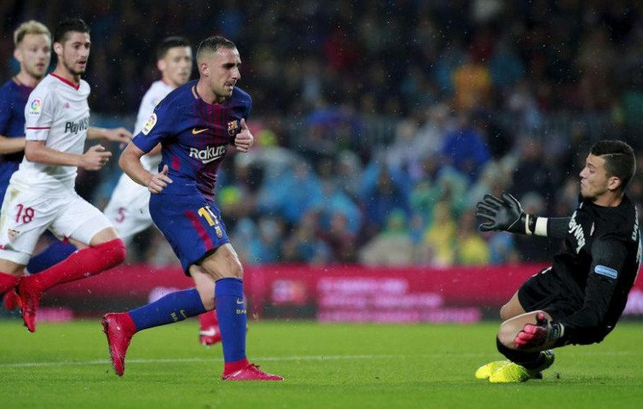 BENDERRAnews, 5/11/17 (Barcelona): Striker Paco Alcacer menikmati penampilan sebagai pemain tim inti yang jarang didapatkannya untuk Barcelona dengan mengukir dua gol saat klub Catalan itu menang 2-1 atas Sevilla di La Liga di Nou Camp, Sabtu (4/11/17) waktu setempat.