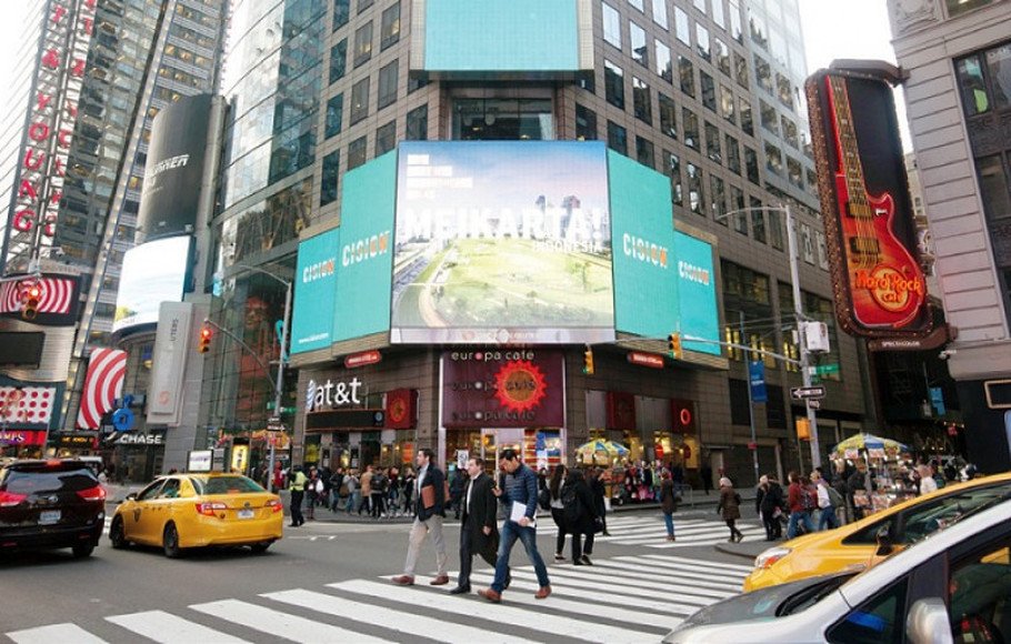 Tidak hanya tayang di jaringan TV internasional, Meikarta juga tampil pada layar besar digital di Times Square, New York. Pada layar tersebut, Meikarta menunjukkan pada warga kota tersebut hadirnya “The Next New York City” di Asia Tenggara, tepatnya di Indonesia.