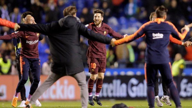 Barca memastikan gelar La Liga musim ini usai mengalahkan Deportivo 4-2 di Estadio Municipal de Riazor, Senin (30/4/18) dini hari WIB. Lionel Messi mencatat hat-trick di laga itu, plus satu gol dari Philippe Coutinho, untuk membawa timnya mengunci titel dengan empat pekan tersisa.