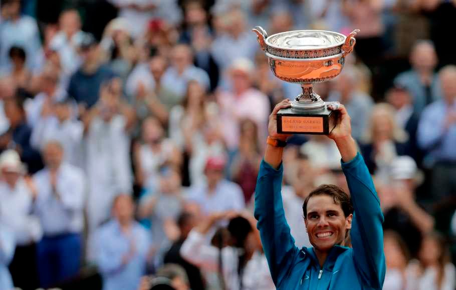 BENDERRAnews, 11/6/18 (Paris): Petenis nomor satu dunia, Rafael Nadal sedang dalam penampilan paling menakjubkan saat dia mengalahkan petenis Austria Dominic Thiem untuk memperbesar rekor gelar Prancis Terbuka menjadi yang ke-11 dengan kemenangan 6-4, 6-3, dan 6-2 di Paris, Minggu (11/6/18) waktu setempat.