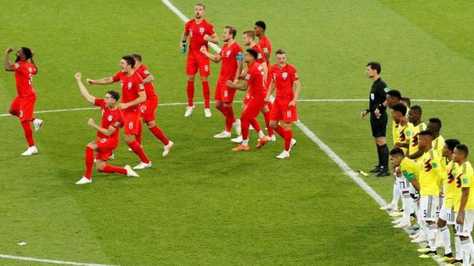 Inggris secara dramatis memastikan diri melaju ke babak perempat final Piala Dunia 2018 usai mengalahkan Kolombia, Rabu dini hari WIB, 4 Juli 2018.