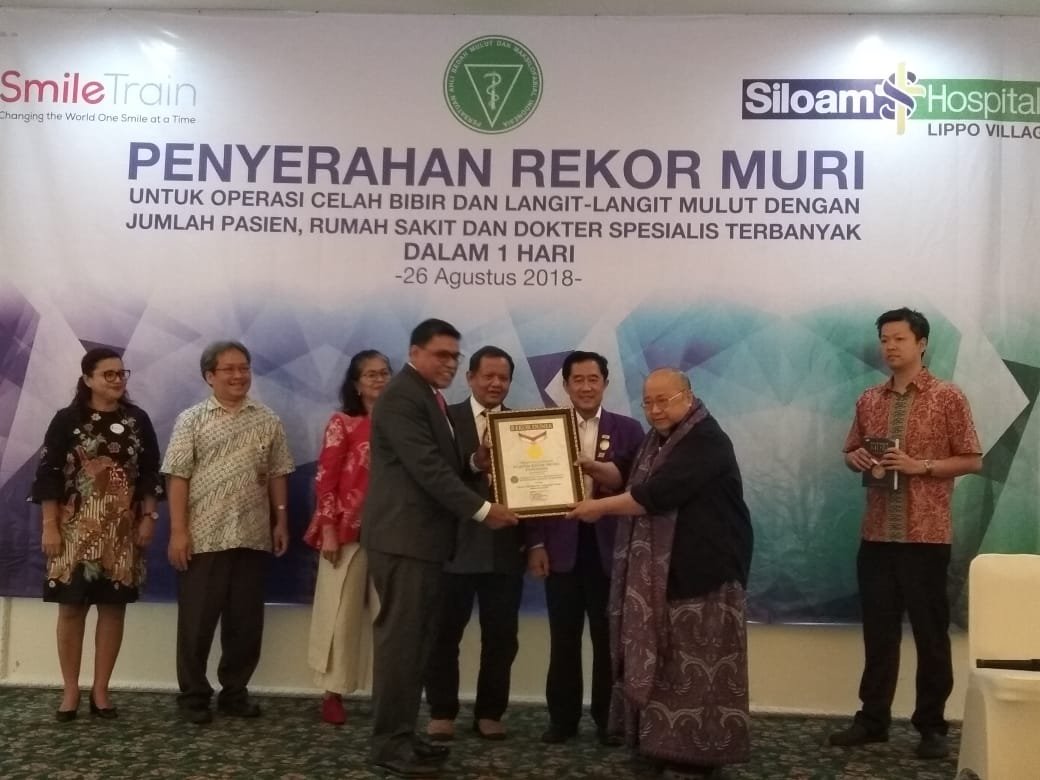 Atas keberhasilan tersebut, pendiri Museum Rekor Dunia Indonesia (Muri), Jaya Suprana menyerahkan piagam Muri kepada Ketua PABMI, drg M Syafrudin Hak, Sp.BM (K) di Siloam Hospitals Lippo Village (SHLV) dan disaksikan oleh seluruh pengurus PABMI, para dokter ahli spesialis bedah mulut dan direktur dari 17 rumah sakit serta perwakilan Smile Train, organisasi non profit pendukung utama aksi sosial tersebut.