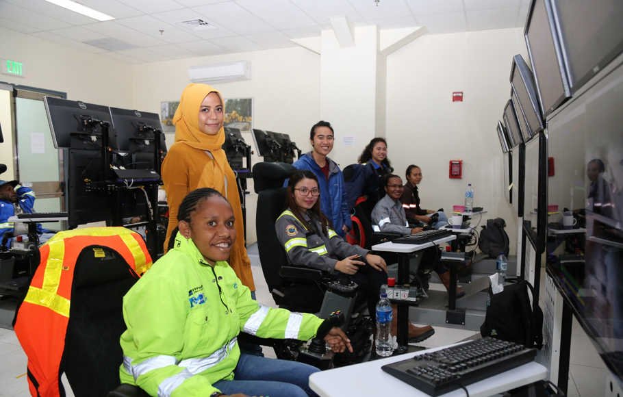 Kalangan perempuan ini, termasuk para putri dari Tanah Papua merupakan operator alat berat jarak jauh yang bekerja untuk Freeport Indonesia.