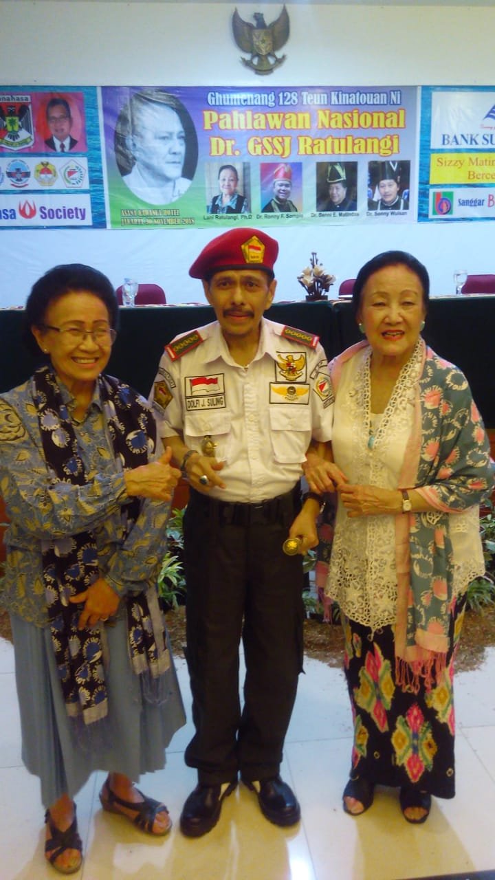 BENDERRAnews, 1/12/18 (Jakarta): Gelaran acara “Ghumenang 128 Teun Kinatouan Ni Pahlawan Nasional Dr GSSJ Ratulangi” (Perayaan 128 Tahun Pahlawan Nasional Dr GSSJ Ratulangi) di Asana Kawanua Hotel, Jakarta, Jumat (30/11/18) malam berlangsung penuh gegap gempita, dan dihadiri sejumlah tokoh senior pro Merah Putih dari berbagai daerah, termasuk Lani Sugandhi Ratulangi serta Uki Soedjoko Ratulangi (dua putri Pahlawan Nasional, Dr GSSJ Ratulangi, alias Oom Sam Ratulangi).