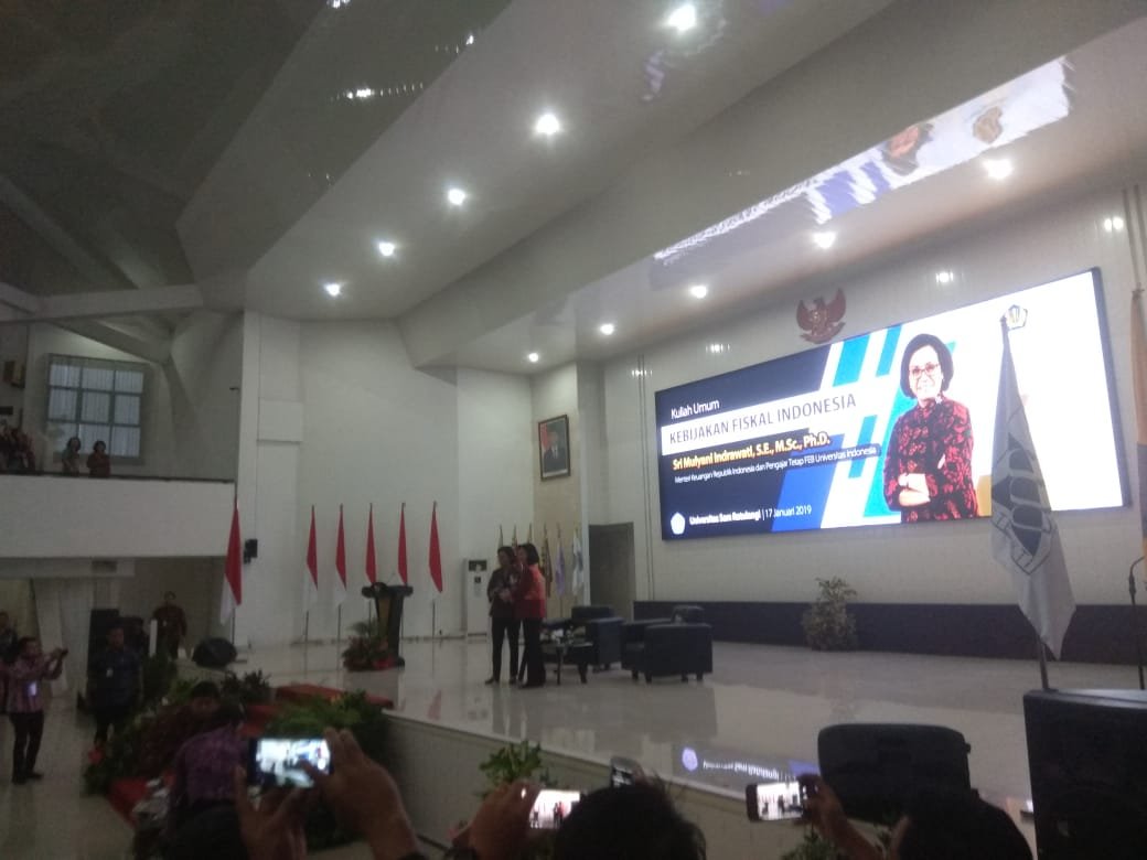 Selanjutnya, Sri Mulyani memberikan kuliah umum, dimana penerima penghargaan menteri terbaik di dunia dari World Government Summit ini mengambil tema “Kebijakan Fiskal Indonesia”.