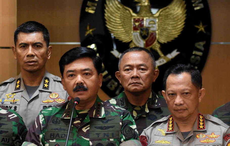 Prajurit malang itu, masih kata jenderal berbintang empat itu, dilukai dan akhirnya dibacok kemudian gugur. Senjatanya dirampas. Kemudian juga ada penyerangan terhadap petugas. Sehingga ada tiga anggota Polri yang terkena panah. Ada yang di leher, juga di punggung.