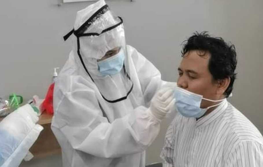 Berdasarkan foto yang diterima BeritaSatu.com, Gus Nur diperlakukan dengan standar protokol Covid-19. Polisi melakukan tes usap atau swab test pada Sugi, yang hadir mengenakan masker.