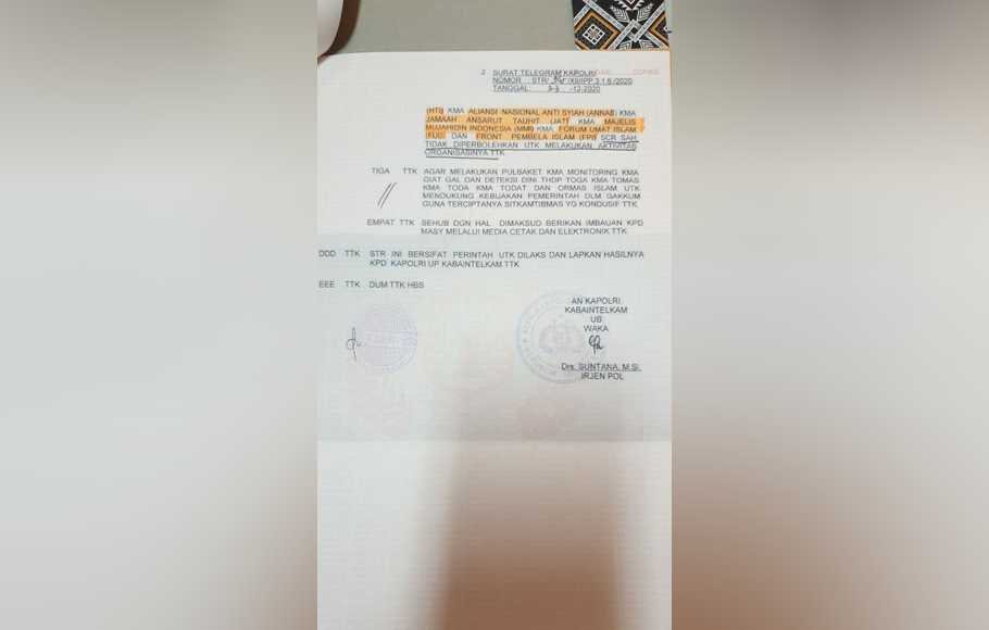 Benarkah surat tersebut dan pelarangan enam ormas termasuk FPI?