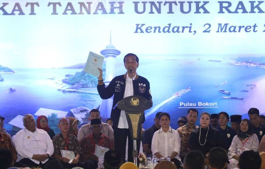 Penyerahan sertifikat tanah ini, menurut Jokowi, merupakan komitmen pemerintah untuk terus mempercepat pensertifikatan tanah di seluruh Tanah Air, di seluruh Indonesia.