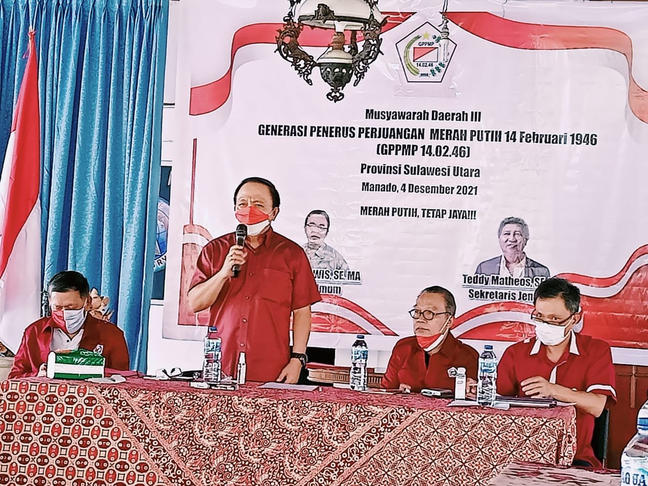 BENDERRAnews.com, 6/12/21 (Manado): Musyawarah Daerah III DPD GPPMP Sulawesi Utara 2021 sukses dilaksanakan di Aula “MAESA KORAH LANGI”, Jalan Sam Ratulangi 17 Nomor 24, Titiwungen Manado, Sabtu (4_12/21) yang dihadiri unsur Dewan Penasihat, Ir Lucky Harry Korah, MSi, Dewan Pembina, Ny Hetty Wuisan (anak pelaku sejarah/pejuang Merah Putih 14 Februari 1946), unsur DPP GPPMP, dipimpin langsung Ketua Umum DPP GPPMP, Jeffrey Rawis, unsur DPD GPPMP Sulut, serta enam DPC GPPMP, yakni Bitung, Minahasa Utara, Manado, Minahasa, Minahasa Selatan, serta Minahasa Tenggara.
