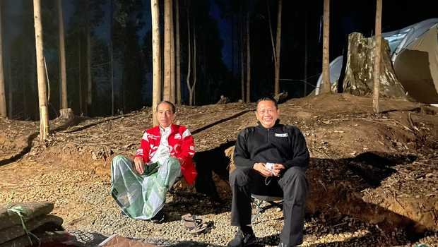 “Presiden Joko Widodo dan sejumlah menteri yang ikut berkemah sangat menikmati denyut nadi dan aura alam Ibu Kota Nusantara. Presiden terlihat sangat santai dengan memakai sarung bermotif kotak dan jaket bermotif G-20 saat bercengkrama di luar tenda,” kata Bamsoet dalam keterangannya, Selasa (15/3/22).